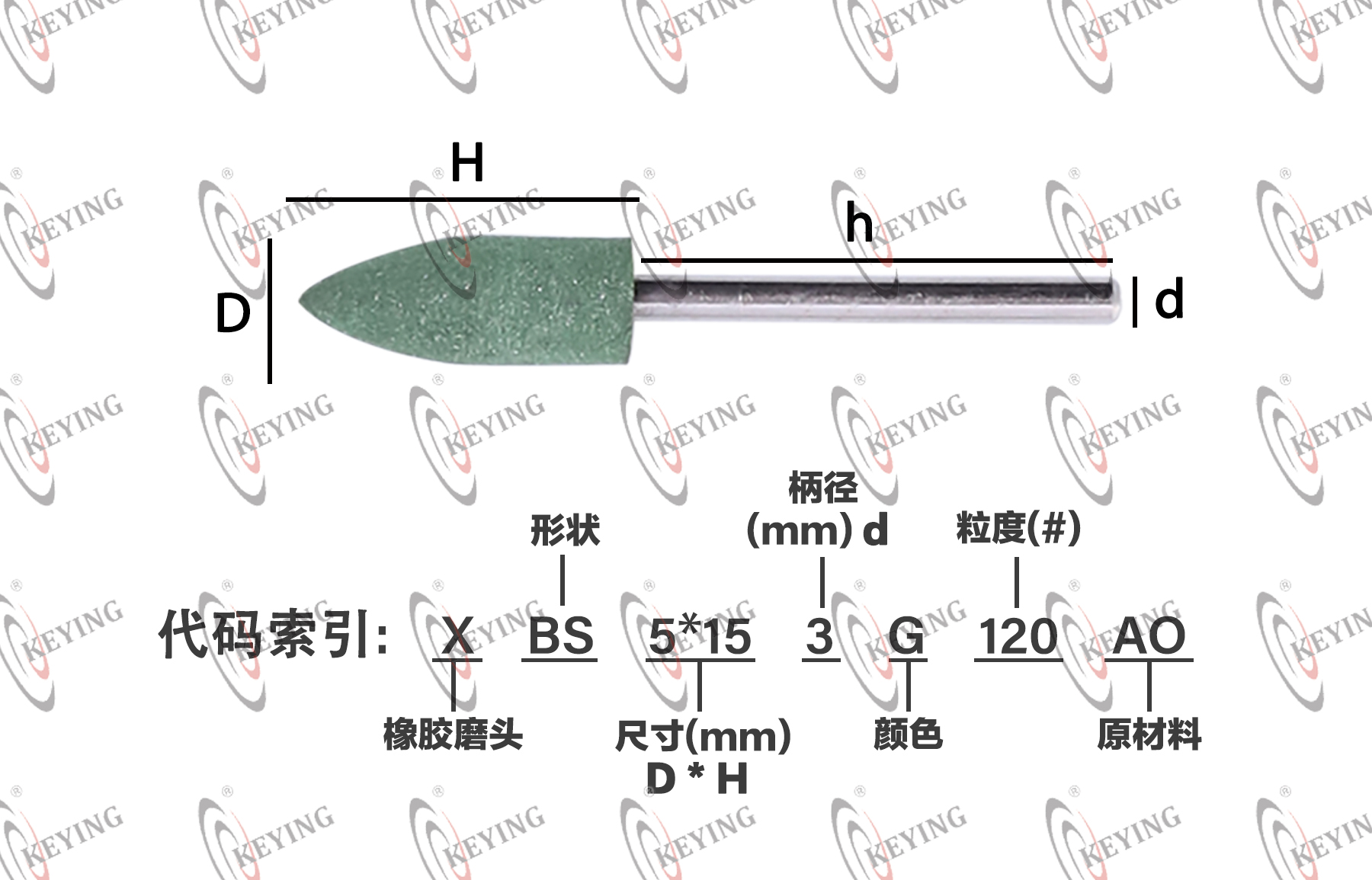 | 品牌 | KEYING科盈 | 形状 | 圆锥形 | 产品 编码 | X + BS + 25*25 + 6 + G + 120 ↓ ↓ ↓ ↓ ↓ ↓ 橡胶磨头 形状 尺寸(mm) D*H 柄径(mm) d 颜色 粒度(#) |