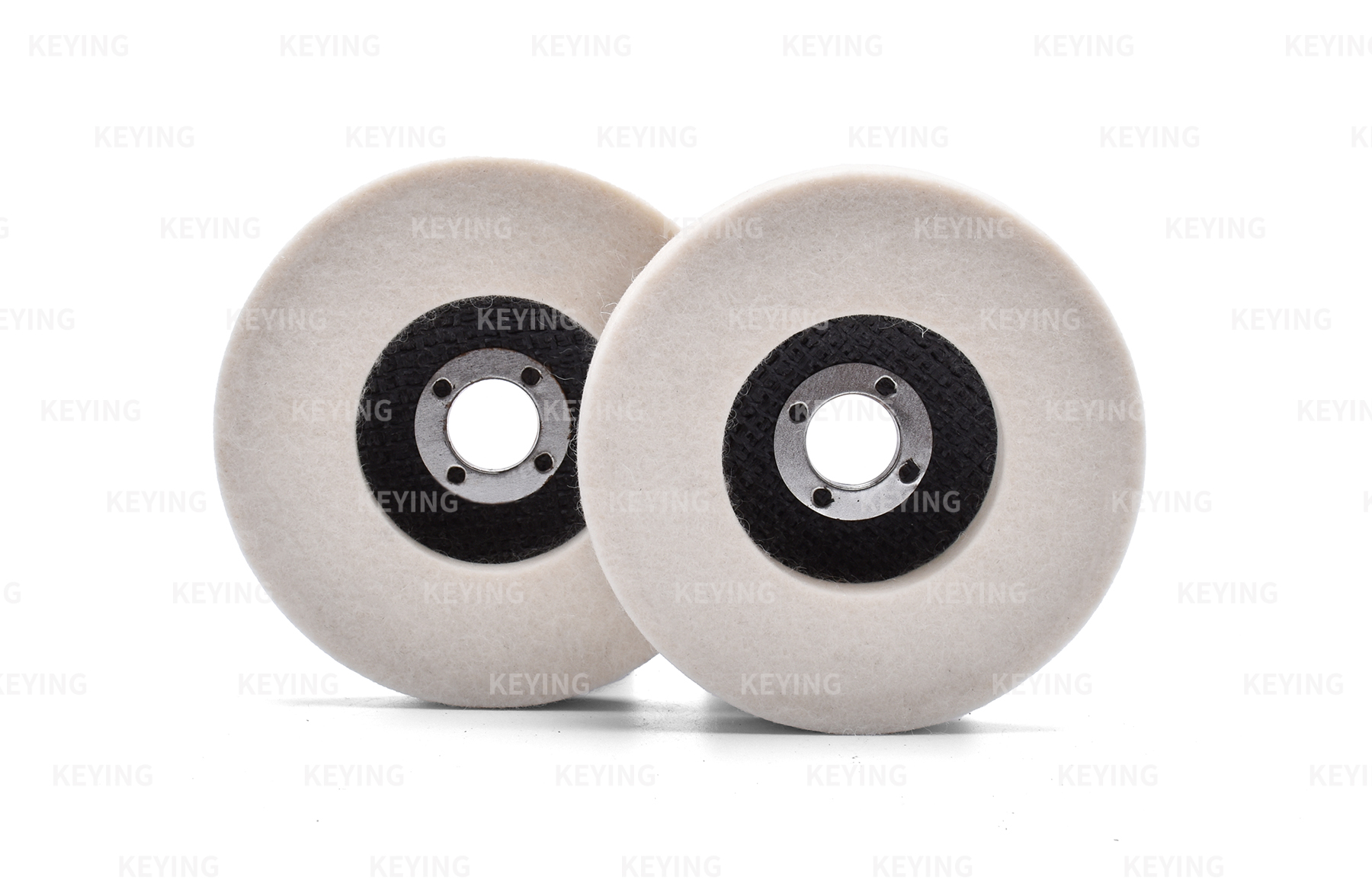 KEYING科盈羊毛磨片是由天然毛毡并附和在玻璃纤维背上。各个叶片的柔性允许冷气在任何时候都能流动,也使得工件轮廓得到完美的适应。该工具与抛光膏一起用于中到大型组件的预抛光和高光抛光。因此,这些抛光膏被选来确定所需的抛光程度。