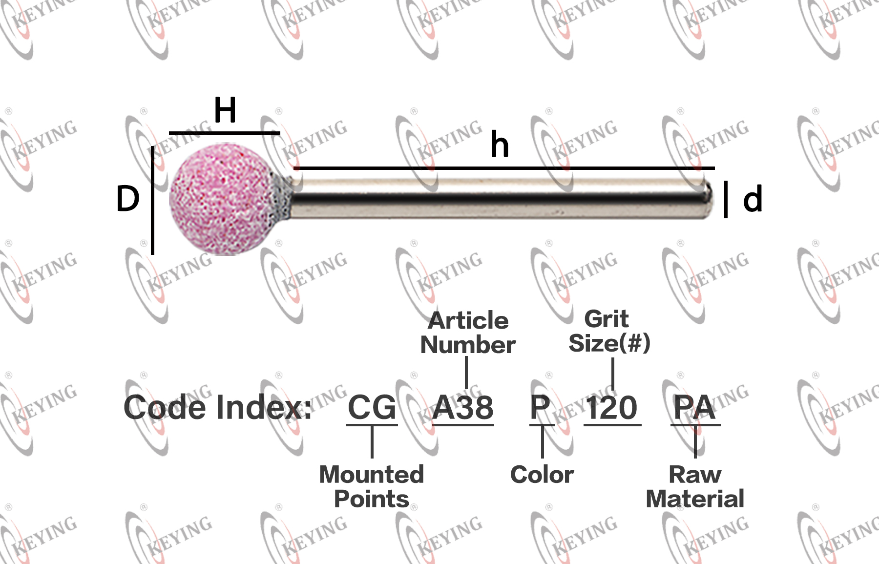 | Brand | KEYING | Origin Country | China | Product Code | CG + A1 + P + 120 + PA ↓ ↓ ↓ ↓ ↓ MountedHead Model Color Grit(#) Material |