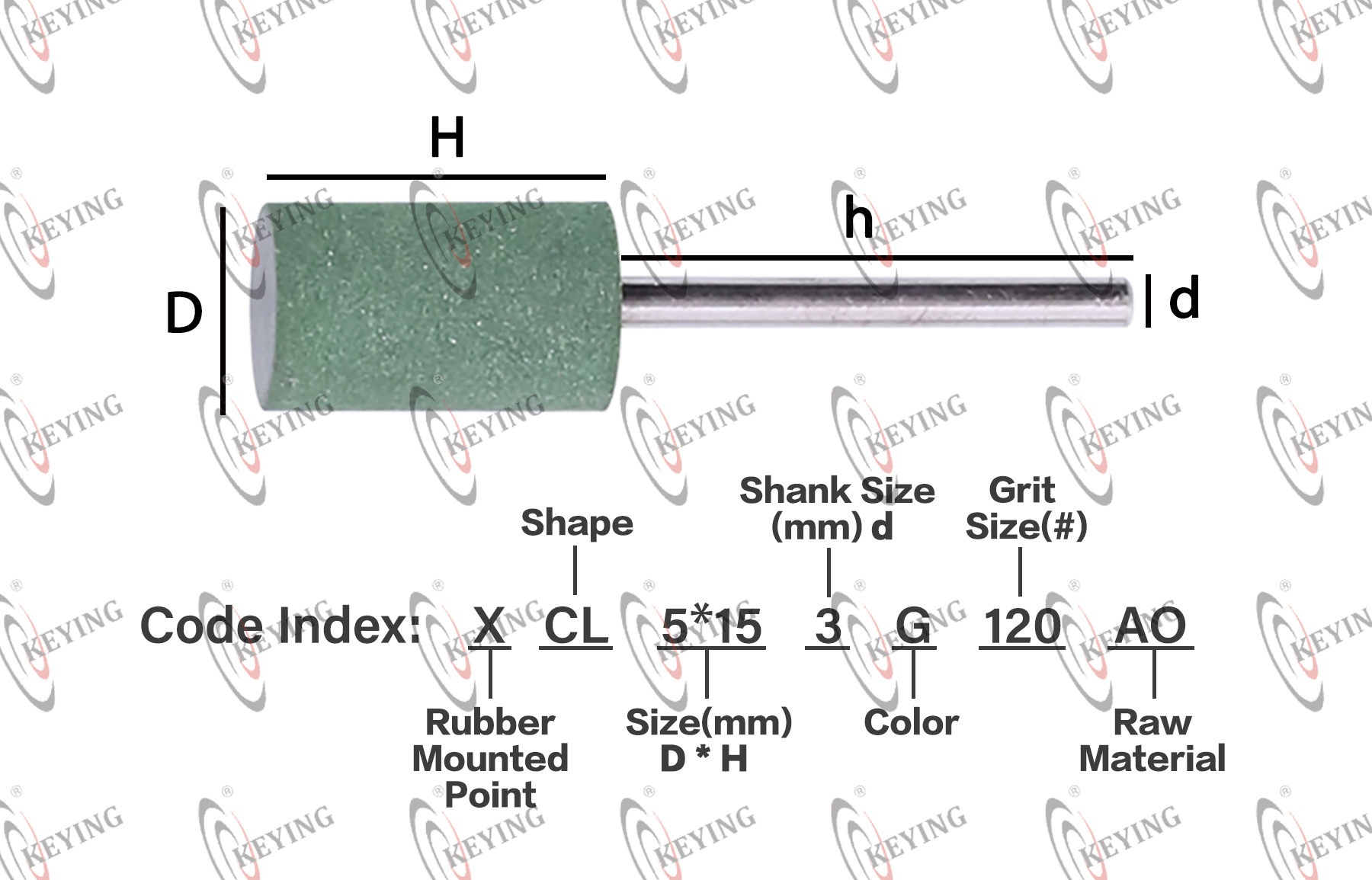 | Brand | KEYING | Shape | Cylindrical | Product Code | X + CL + 12*20*6 + G + 120 ↓ ↓ ↓ ↓ ↓ Rubber Mounted Point Shape Size(mm) D*H*d Color Grit(#) |