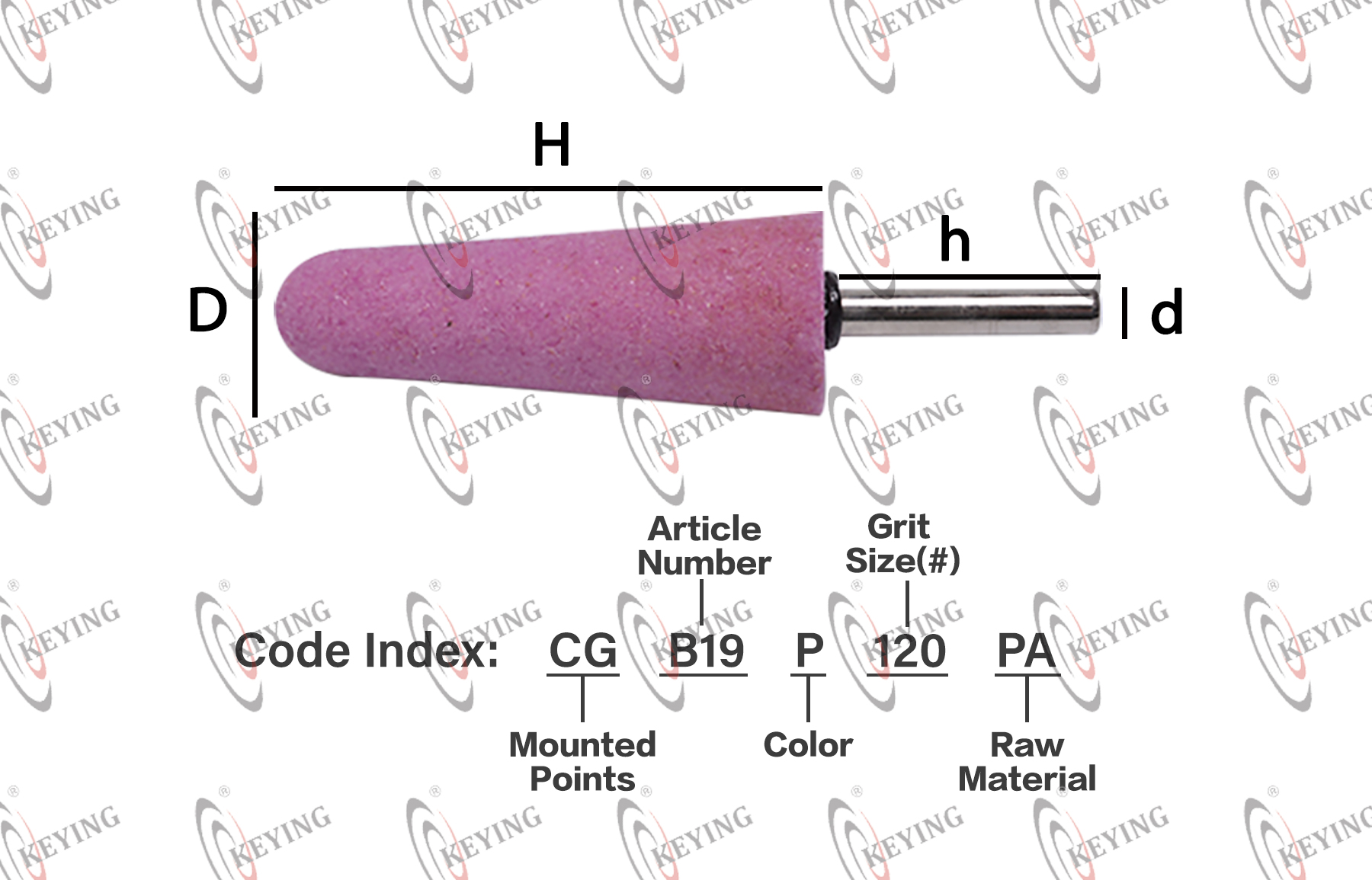 | Brand | KEYING | Origin Country | China | Product Code | CG + A1 + P + 120 + PA ↓ ↓ ↓ ↓ ↓ MountedHead Model Color Grit(#) Material |