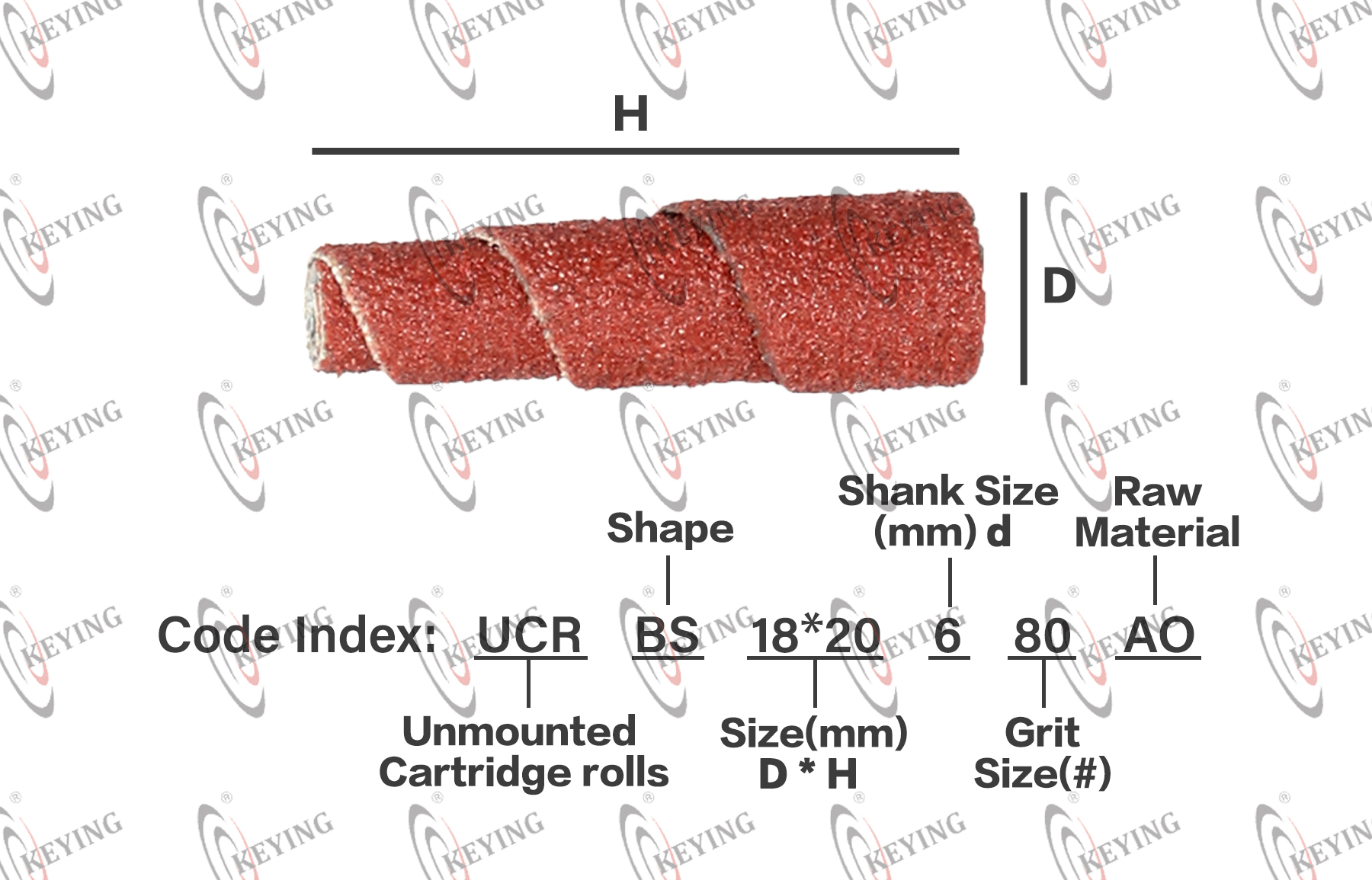 | Product Code | CRZ + 20*38 + 120 + AO ↓ ↓ ↓ ↓ Cartridge Roll Size(mm) D * H * d Grit(#) Raw Material | Speed | 12000RPM~25000RPM | ||