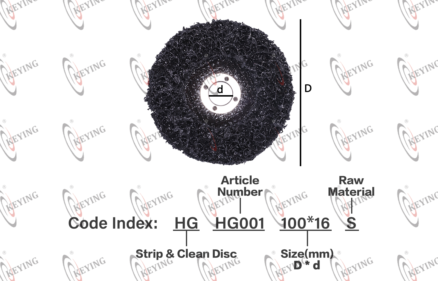 | Product Code | HG + HG001 + 100*16 + S ↓ ↓ ↓ ↓ Strip & Clean Disc Article Numble Size D*r (mm) Raw Material | ||
