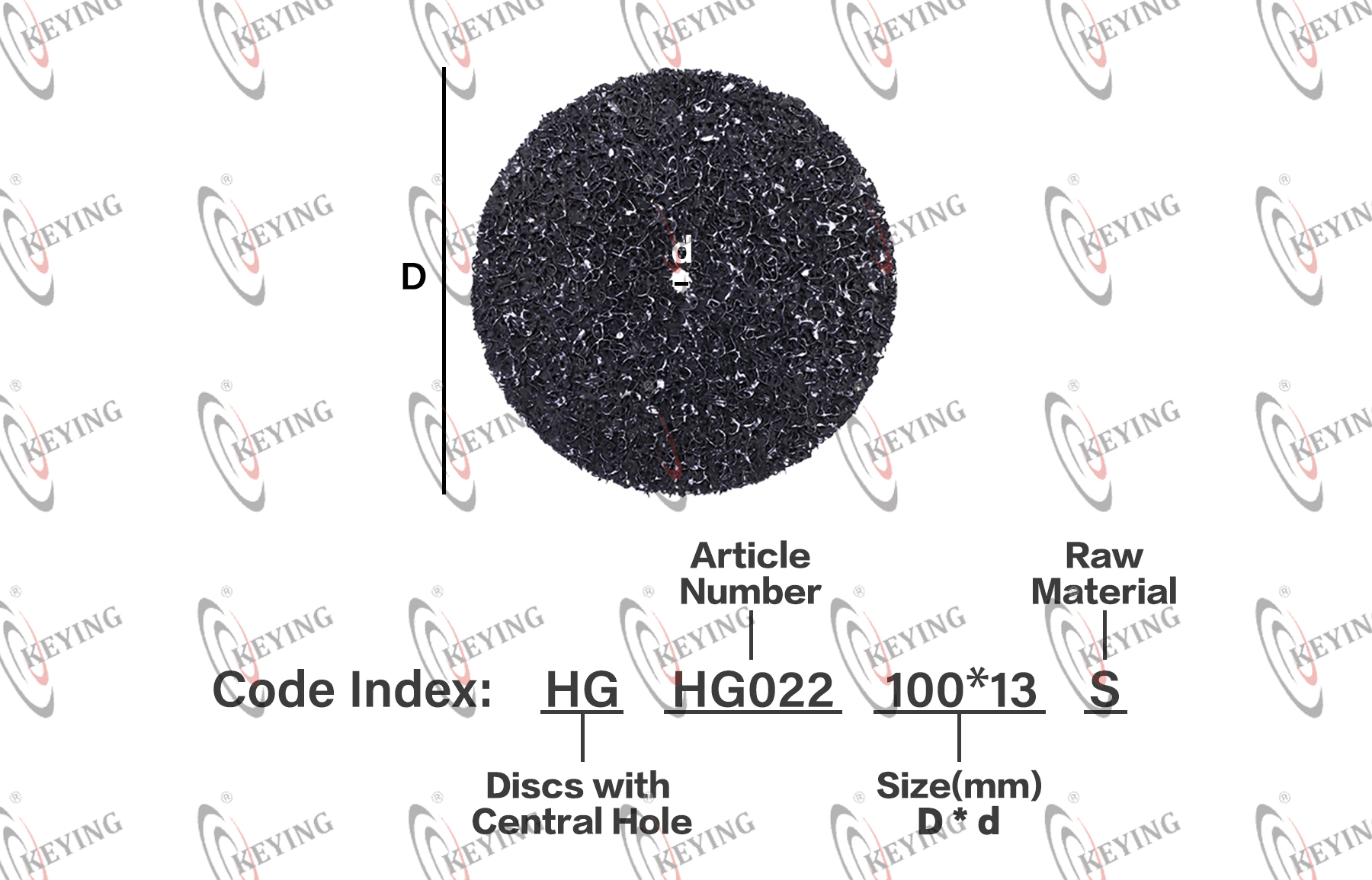 | Product Code | HG + HG027 + 100*13 + AO ↓ ↓ ↓ ↓ Strip & Clean Disc with Central Hole Article Numble Size D*r (mm) Raw Material | ||