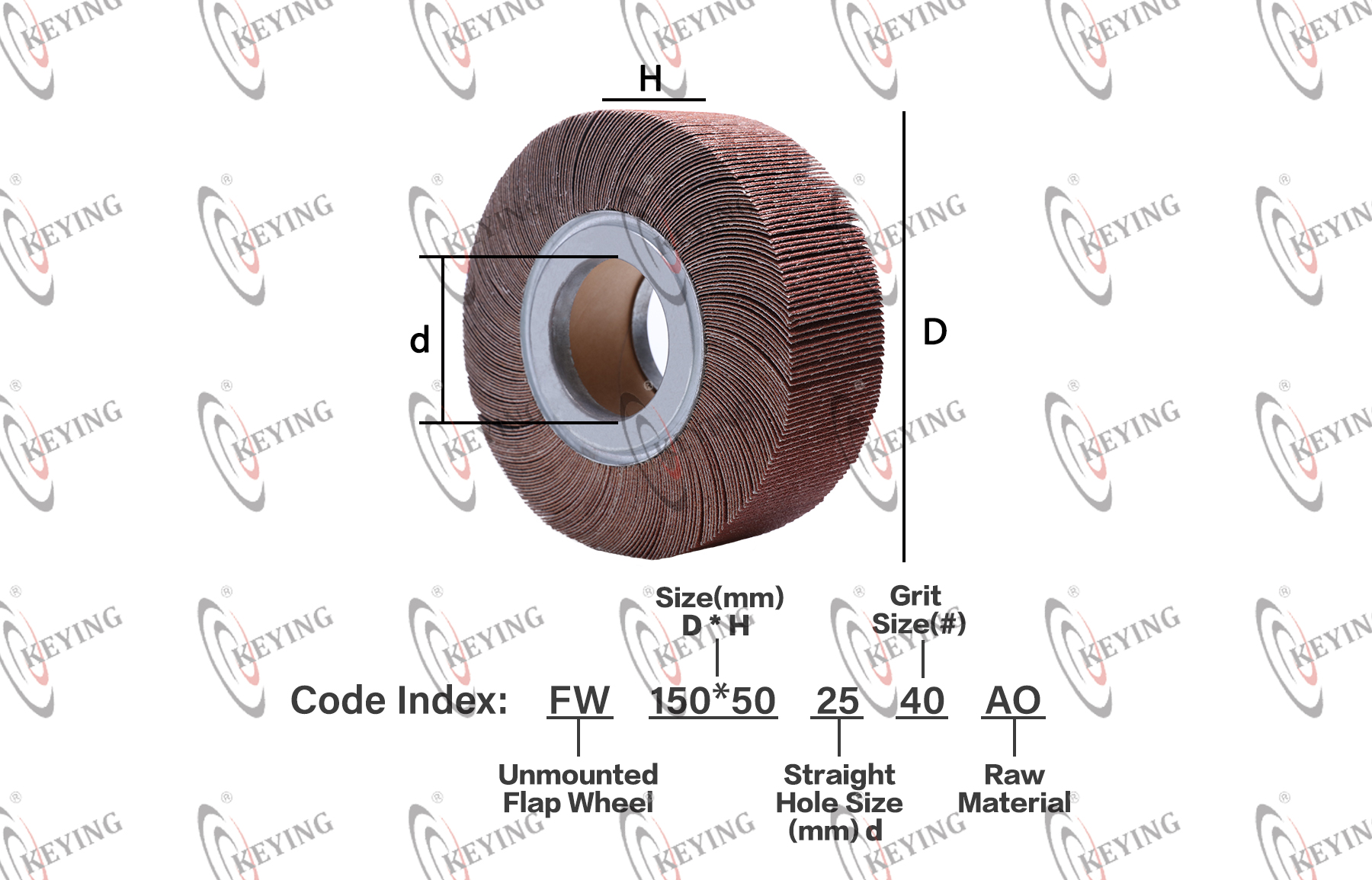 | Product Code | FW + 150*50 + 25 + 40 + AO ↓ ↓ ↓ ↓ ↓ 千页轮 尺寸 D*H (mm) 孔径 d (mm) 粒度(#) 原材料 | ||