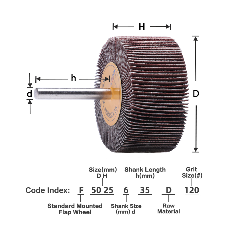 | Brand | KEYING | Origin Country | China | Product Code | F + 15*15*3 + 120 + AO ↓ ↓ ↓ ↓ Mounted Flap Wheel Conventional Models Size(mm) D * H * d Grit(#) Raw Material |