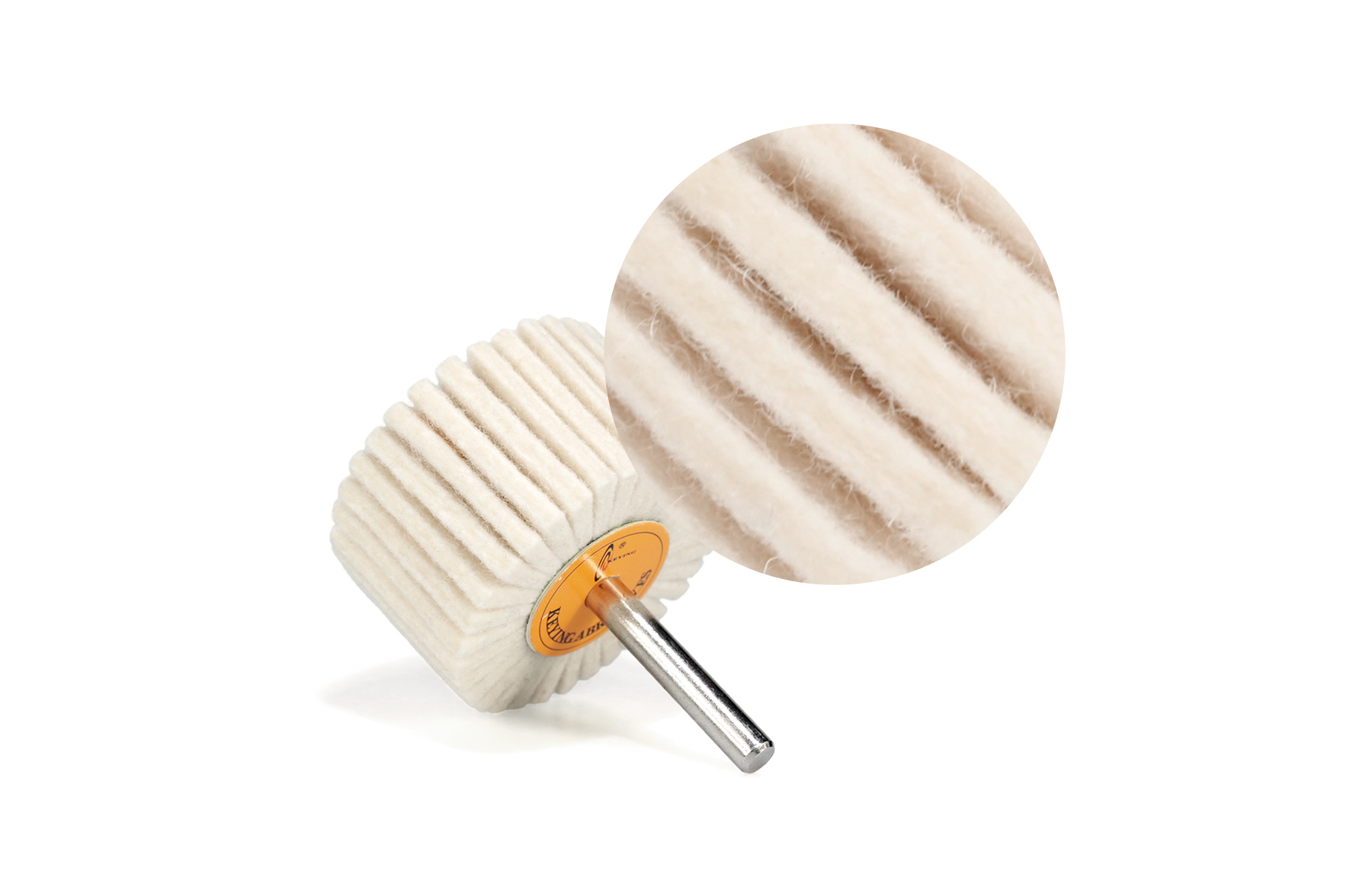 KEYING Wool Felt Wheel combined with polishing paste is used for pre-polishing and high-gloss polishing to work accurately in hard-to-reach places. The main use is to hard type of workpiece for pre-polishing processing, soft type of workpiece for high-gloss polishing processing, finishing all the workpiece polishing, if you need very fine mirror effect, you can choose with grinding paste for repeated polishing.