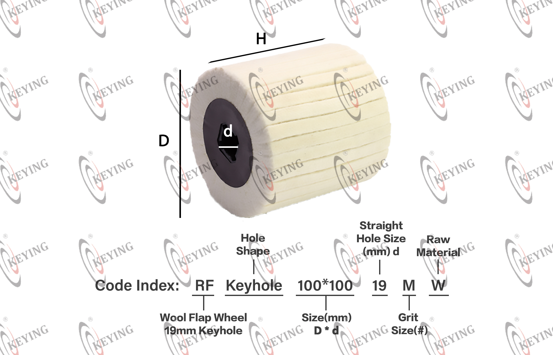 | Brand | KEYING | Origin Country | China | Product Code | RF + Cross Hole + 100*100*19 + M + W ↓ ↓ ↓ ↓ ↓ Wool Flap Wheel Hole Shape Size(mm) D * H * d Grit(#) Raw Material |
